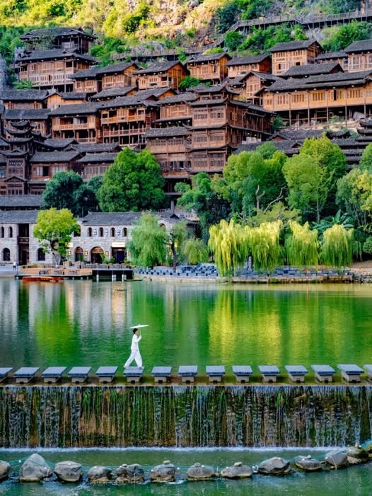Tối Sau bữa tối, check-in cổ trấn An Thuận – Nằm ngay trung tâm thành phố An Thuận, đây là khu phố cổ được bảo tồn và tái hiện lại không gian văn hoá truyền thống của vùng Tây Nam Trung Quốc. Con phố có những dãy nhà mái ngói cổ, các quán trà, cửa hàng đồ thủ công và quầy ăn vặt địa phương. Trên Xiaohongshu, rất nhiều bạn trẻ giới thiệu nơi này là điểm “city walk” hấp dẫn nhất ở An Thuận vừa có thể đi dạo, ăn vặt, chụp ảnh check-in mà không cần di chuyển xa.